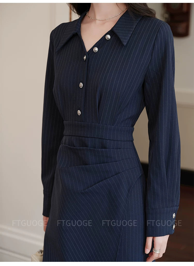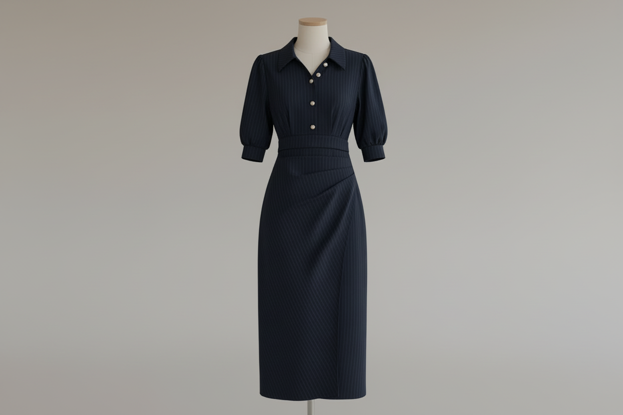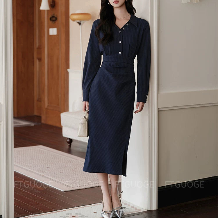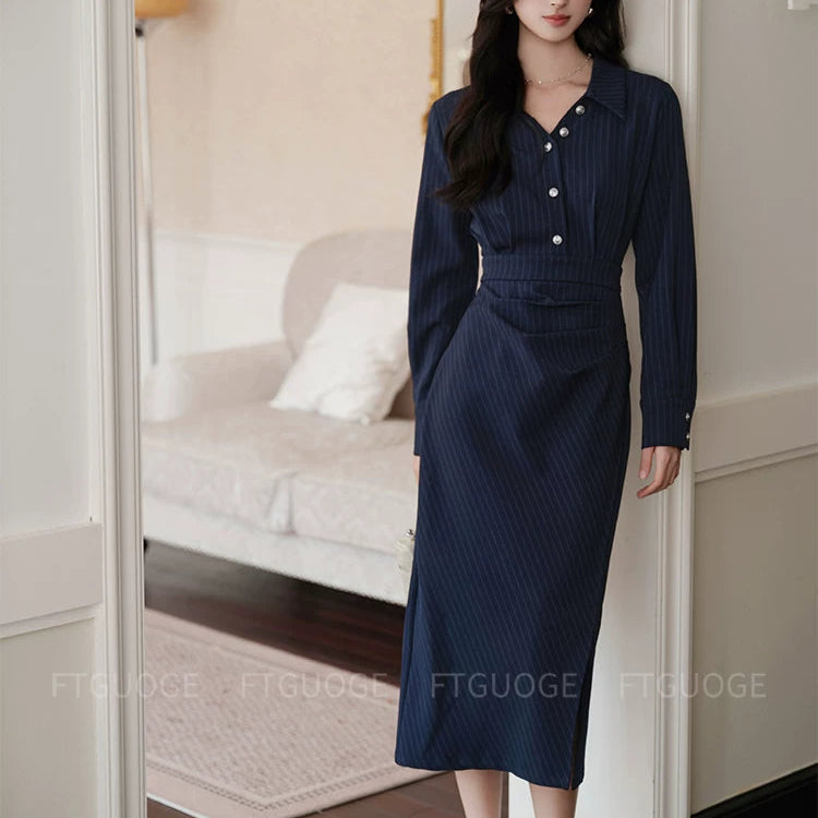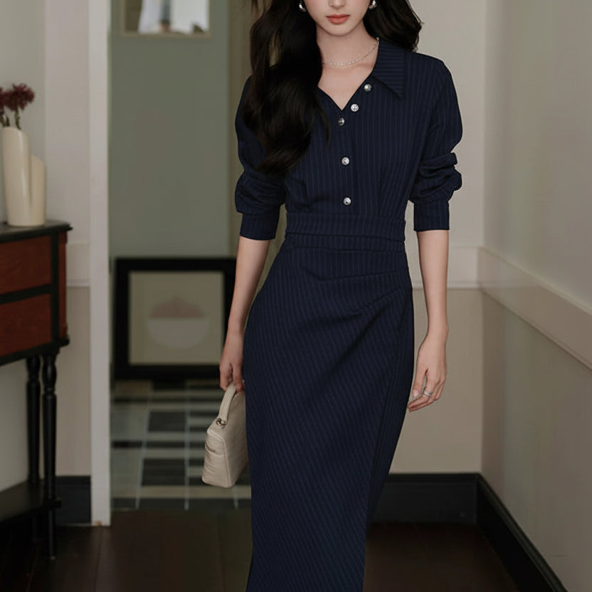 ストライプシャツカラーワンピース01561