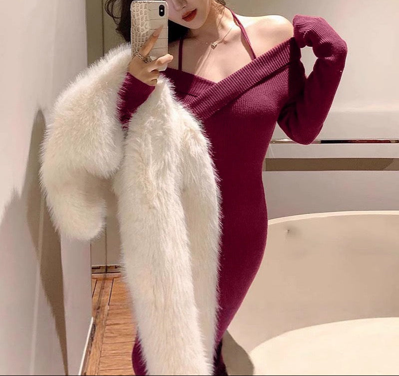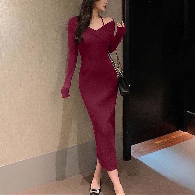 【新作早割1/13まで】エレガントオフショルニットドレス01559