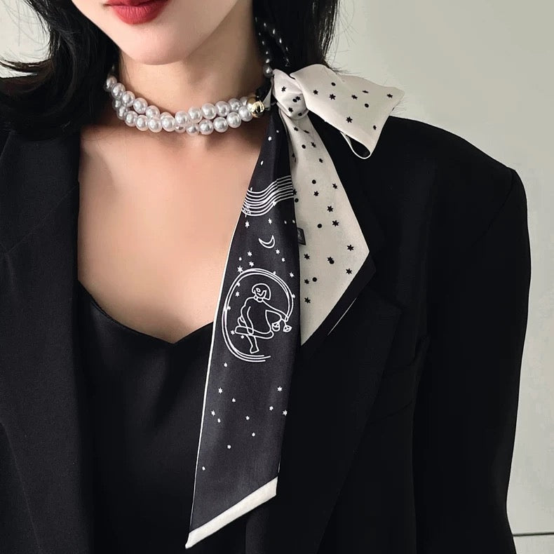 パールをあしらったスカーフネックレスをプレゼント。